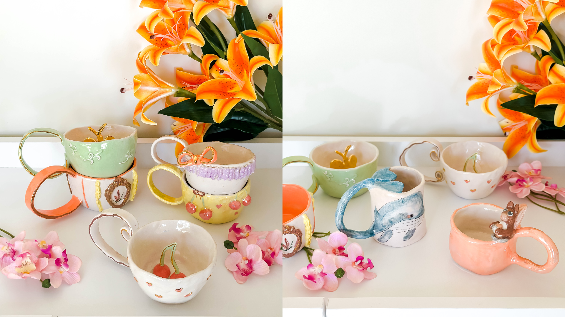 Matcha Girl Mug, Mother of Pearl Lustre 🌿🍒