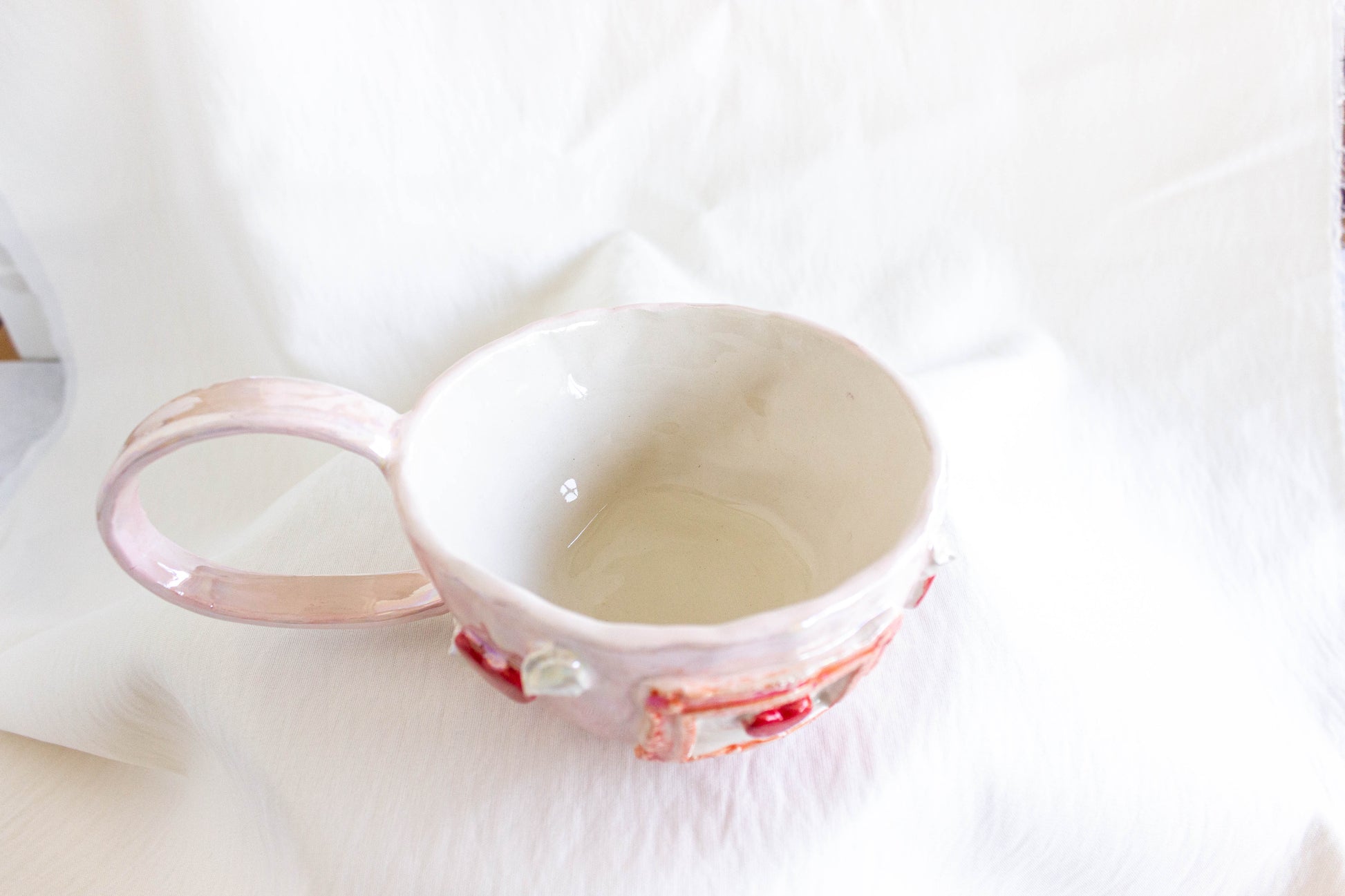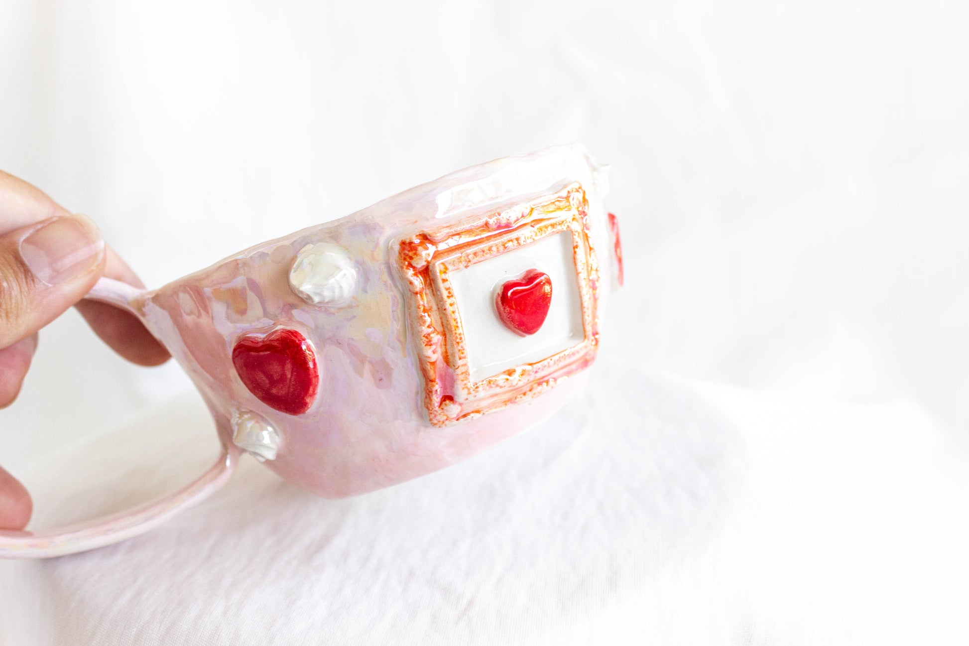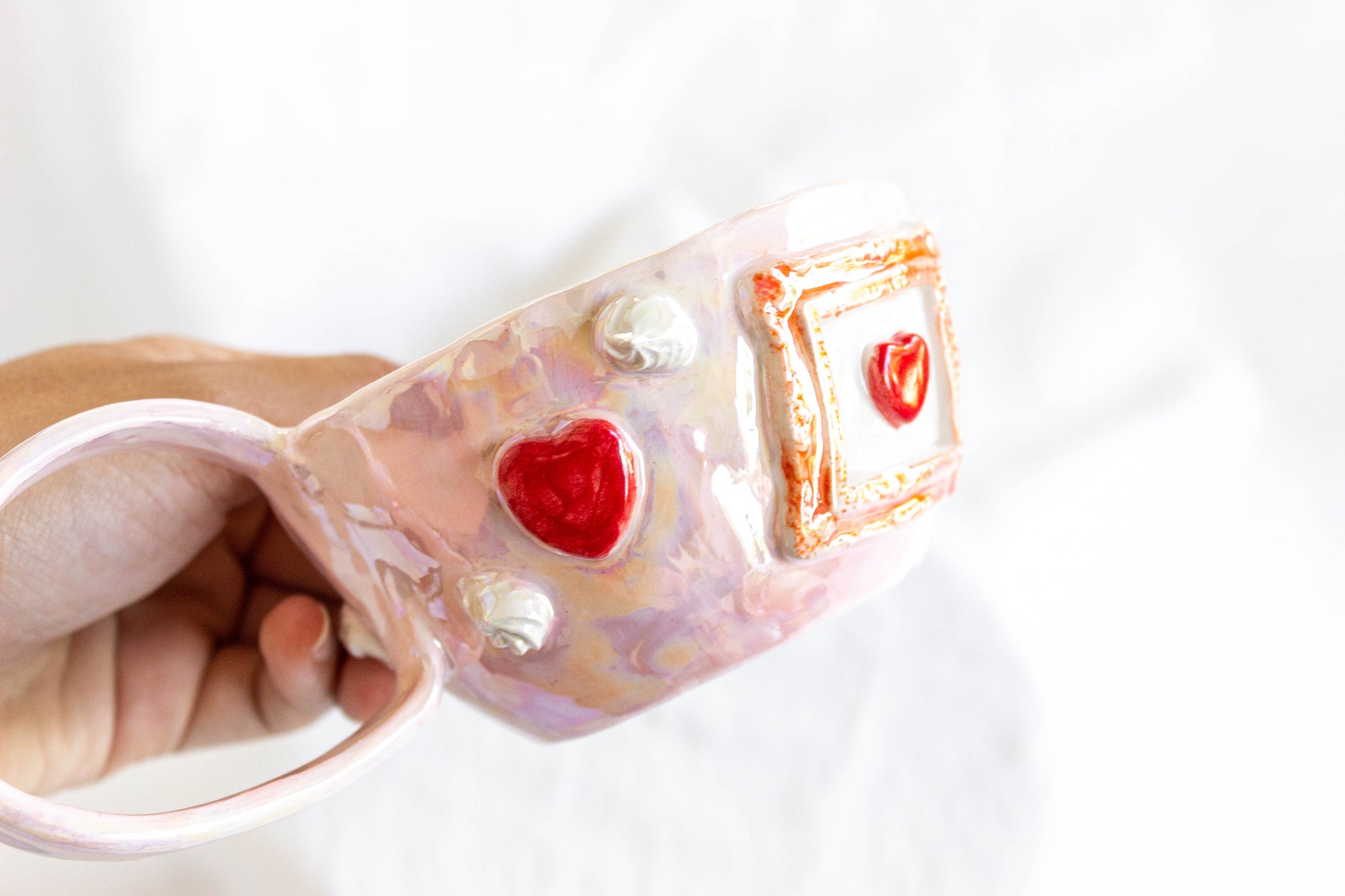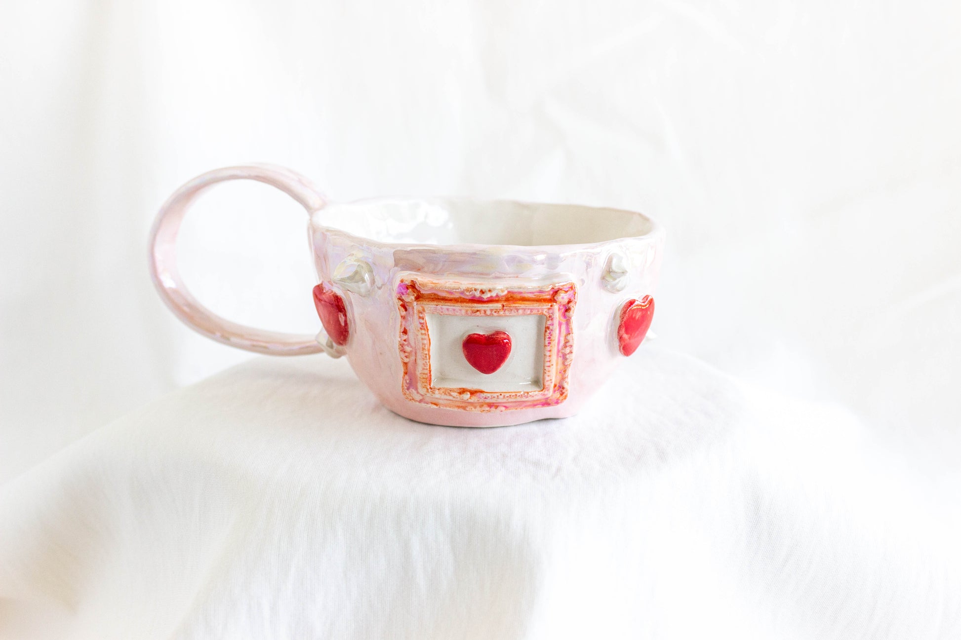 *Handmade Ceramic Mug with Hearts, Pearl Luster