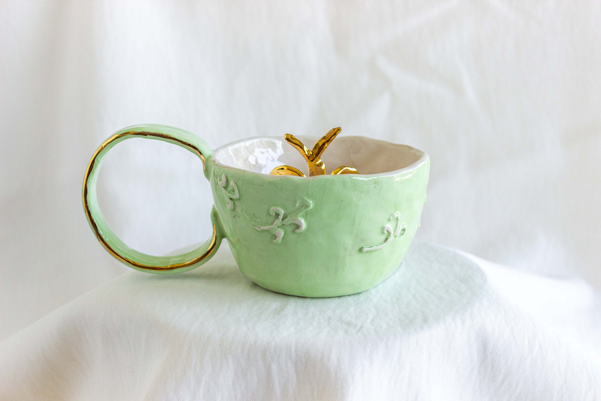 *Handmade Butterfly Ceramic Mug with 24k Gold Details