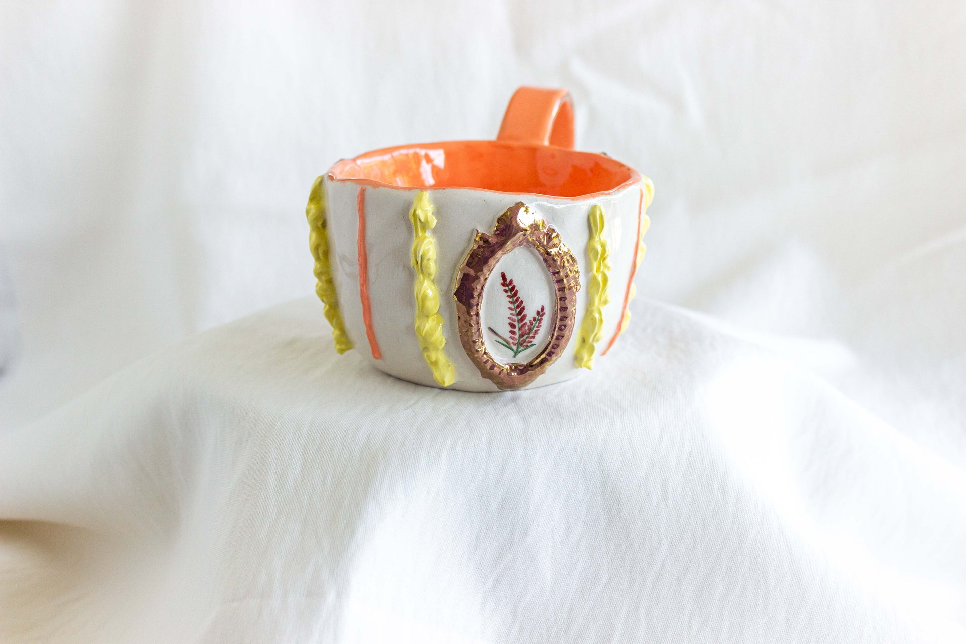 *Hand-built and hand painted ceramic mug with underglaze and food safe glaze.