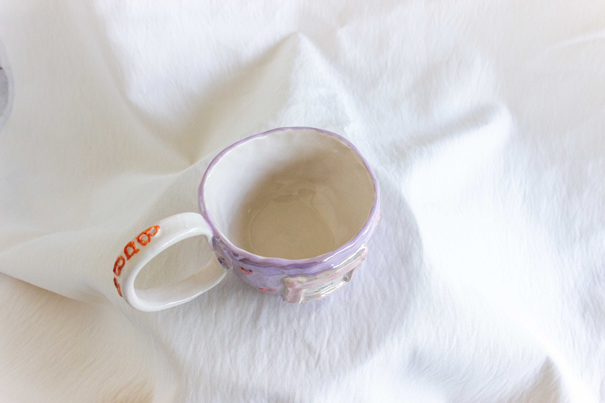 *Hand-built and hand painted ceramic mug with underglaze and food safe glaze.